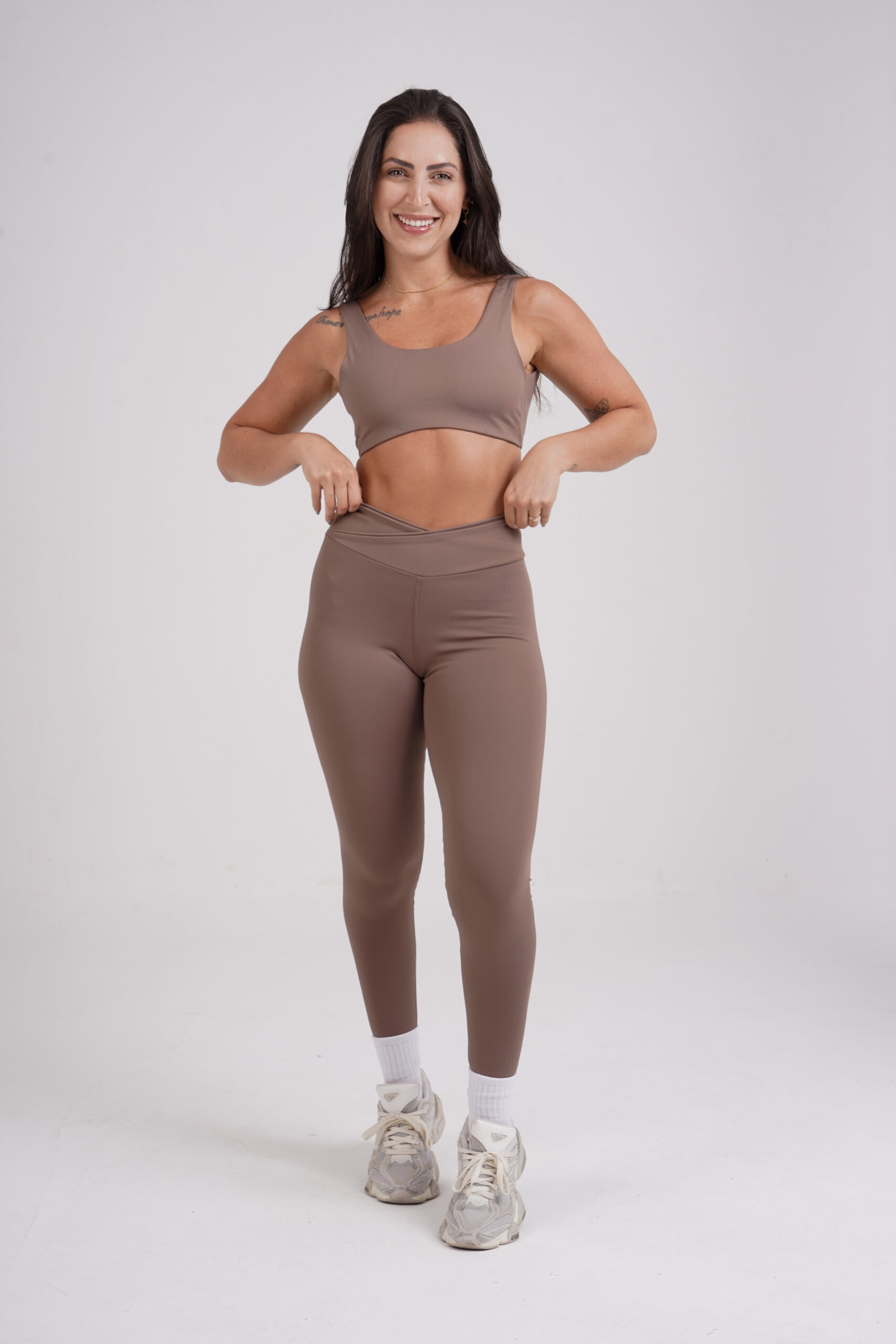 Legging Cós Alto Cruzado Essential Cappuccino